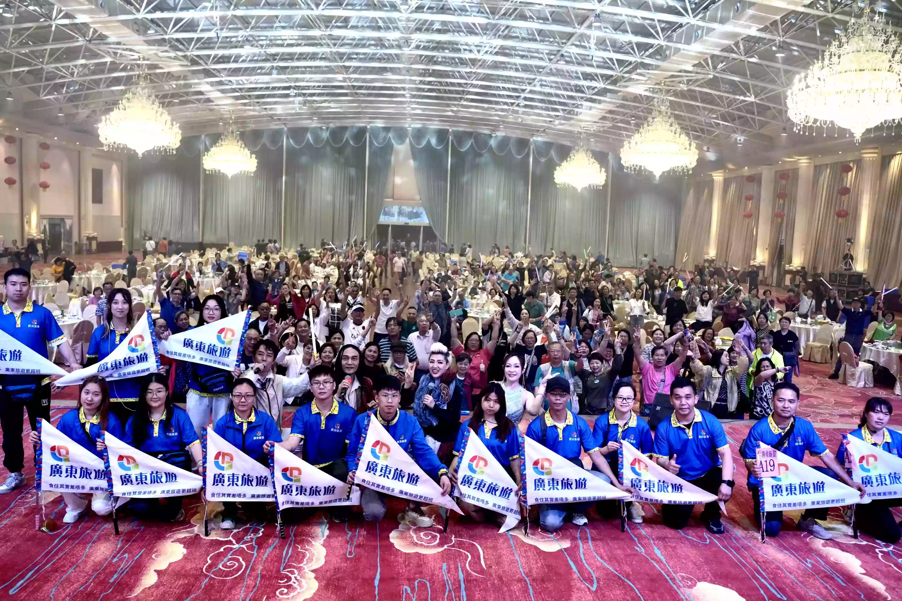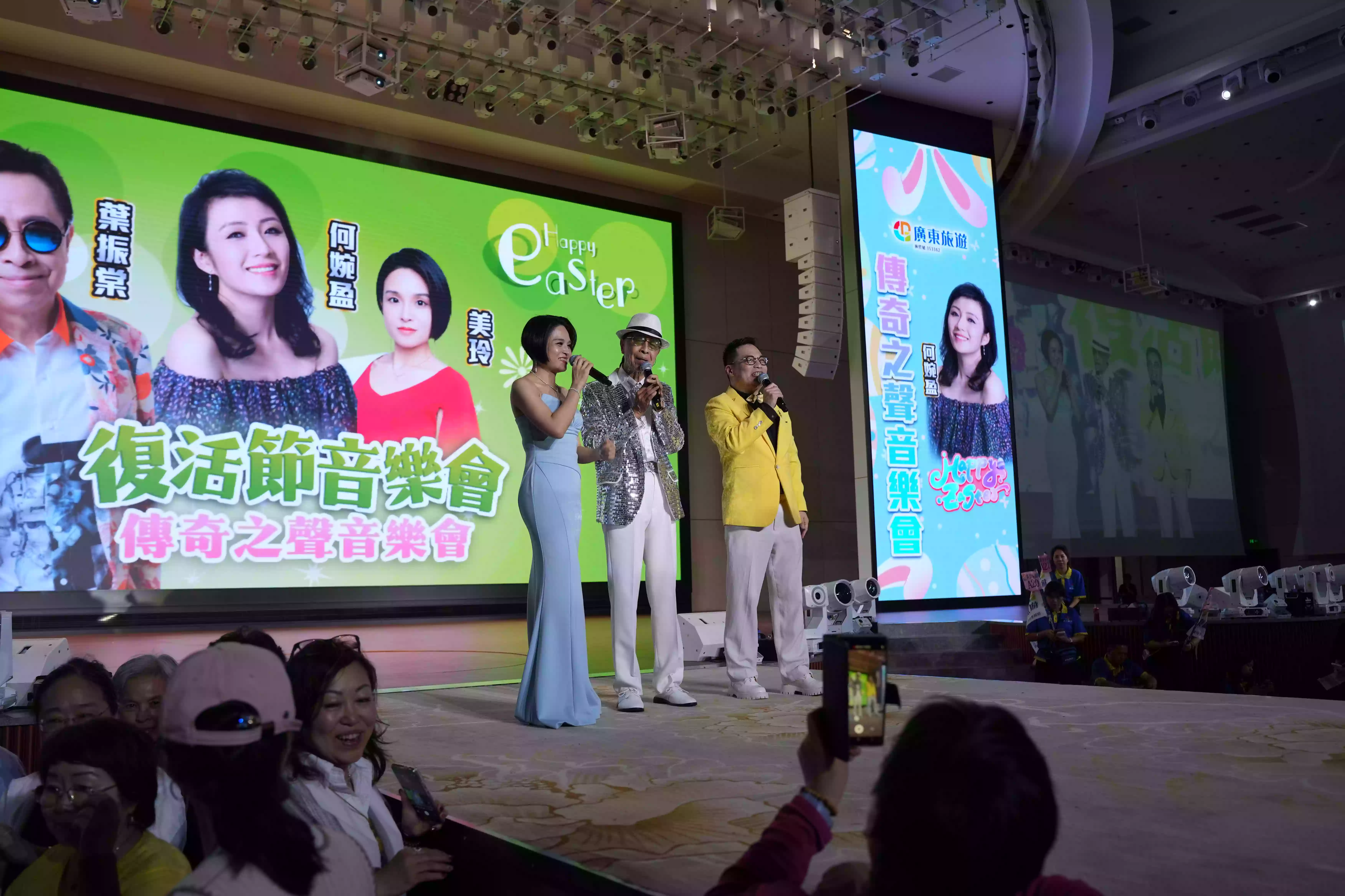 4 月 19 日,“中山5D千人宴會”現場,【傳奇之聲音樂會】盛大舉行。殿堂級歌星葉振棠、靚聲歌後何婉盈、佛山電臺“廣東師兄妹”東東&美玲齊聚一堂,為觀眾帶來了一場音樂傳奇之旅。下午,觀眾們懷著激動的心情入場。東東率先登場,用他富有感染力的歌聲拉開了音樂會的序幕,現場互動環節更是讓觀眾們感受到了音樂的魅力。美玲、何婉盈、葉振棠依次上臺,他們用獨特的嗓音和精湛的演唱技巧,將一首首經典歌曲演繹得淋漓盡致。當何婉瑩與葉振棠同時登臺,攜手演唱時,現場觀眾沉浸在美妙的音樂中,仿彿置身於一個夢幻的音樂世界。最後,全體演職人員與觀眾大合照,為這場音樂會畫上了圓滿的句號。