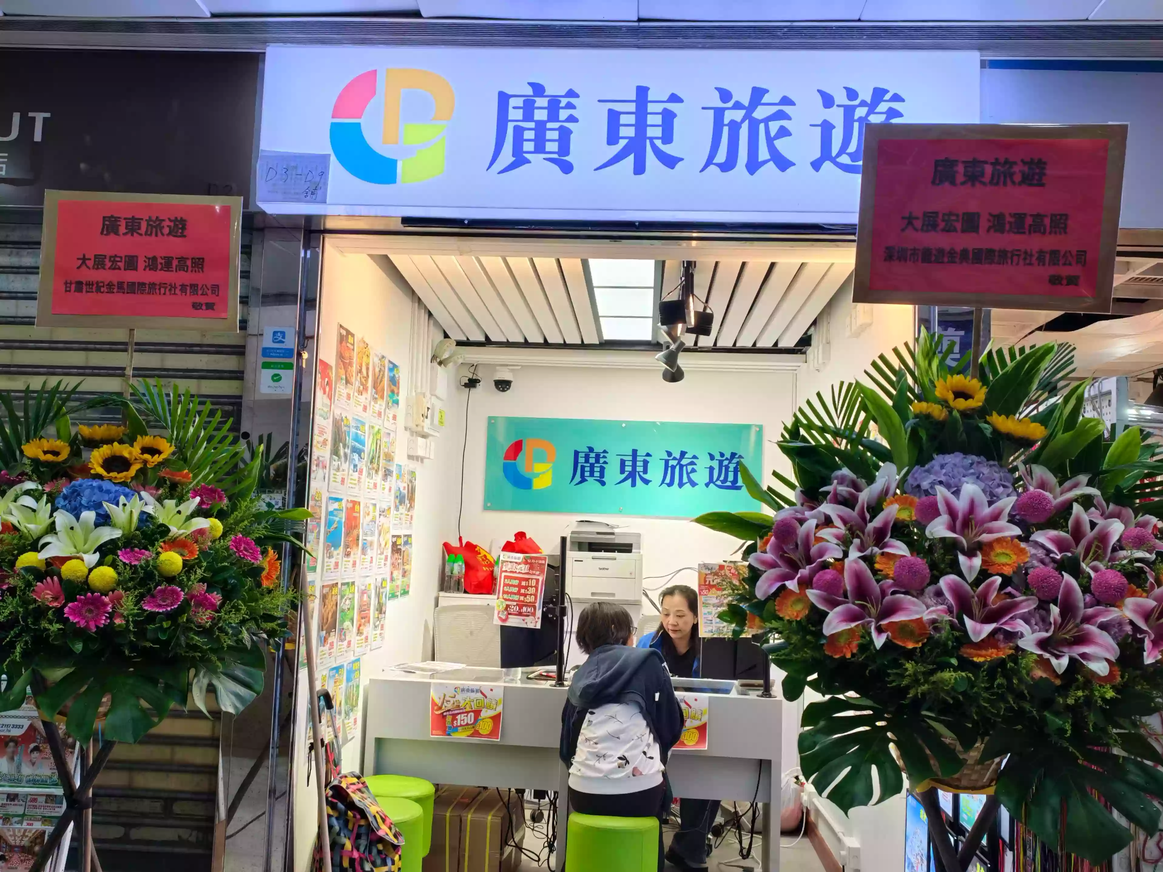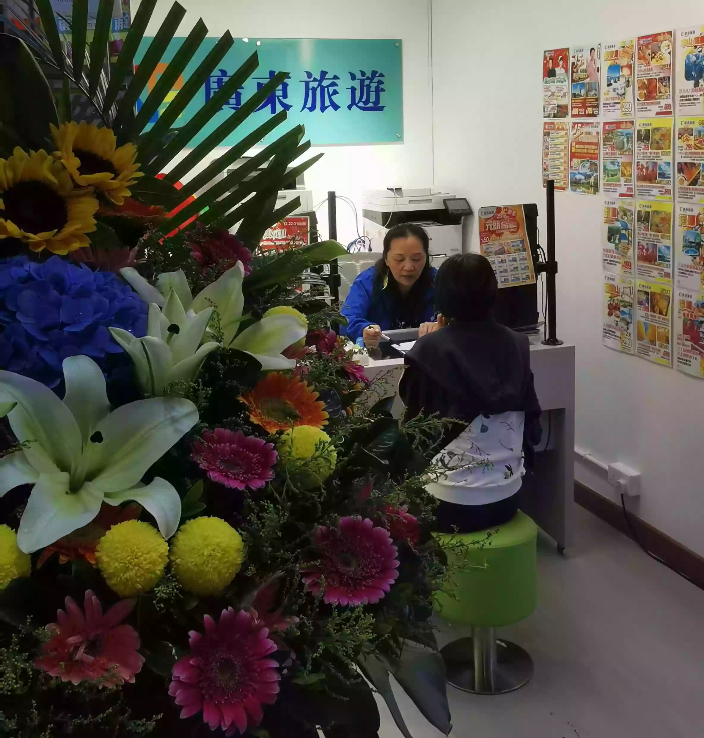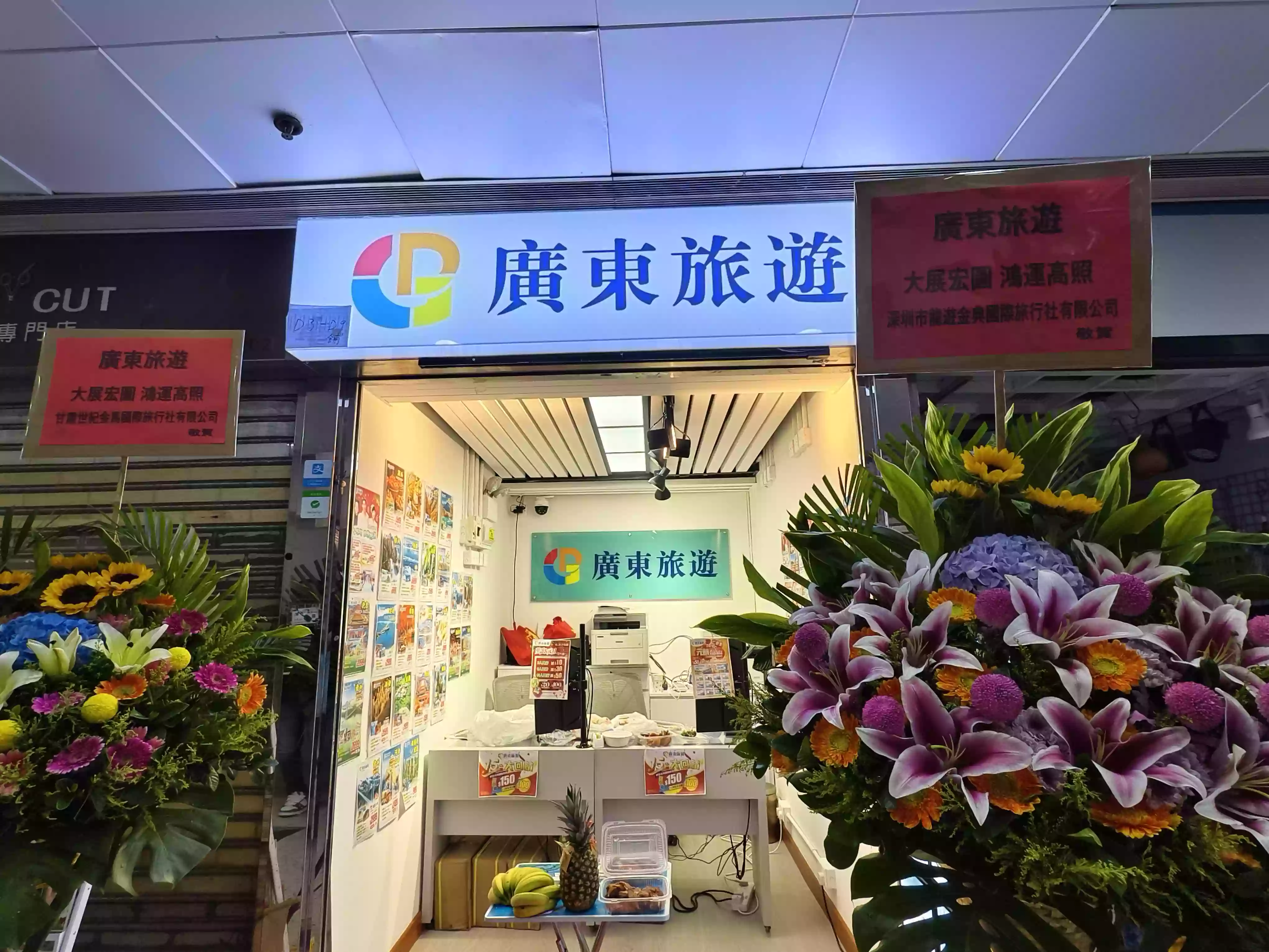 今日(10 月 28 日),本公司元朗分行正式遷址至合益廣場一樓 D3 鋪。甘肅世紀金馬國際旅行社有限公司和深圳龍遊金典國際旅行社有限公司送來花籃表示敬賀。